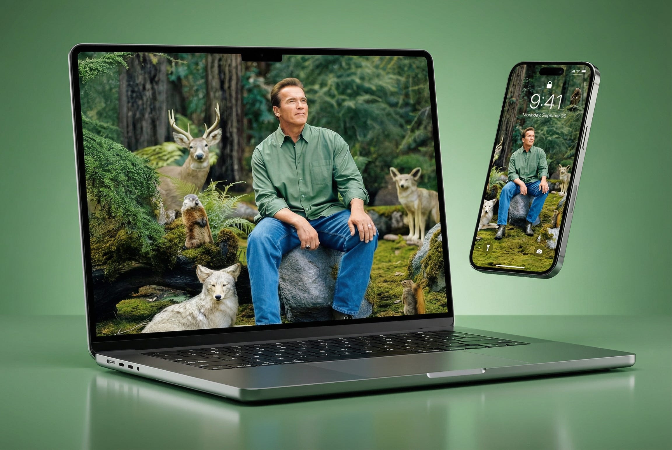 Um lindo wallpaper para seu desktop e celular, com uma foto tirada por Francesco Franchi do Arnold Schwarzenegger para a revista italiana Intelligence in Lifestyle, de 2009, onde o ator está cercado por animais empalhados.